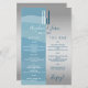 Menu de bar de mariage simple, moderne et élégant bleu poussiéreux avec détails gris argenté et monogramme géant - initiales en haut.