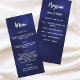 Programme de réception de mariage et menu. Personnalisez et ajoutez votre nom, votre programme et le menu. Fond bleu marine, texte blanc. La couleur bleue est inégale.