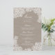 Un élégant et vintage burlap et dentelle design de menu mariage par Shelby Allison.