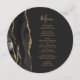 Le bord gauche de cet élégant menu mariage moderne comporte une bordure en aquarelle noire ornée d'une parties scintillant en faux or. Le texte personnalisable combine un script d'écriture fantaisiste couleur or et des polices de cuivre sur un arrière - plan noir en ardoise. L'envers est assorti d'un design d'agate noir et or.