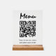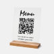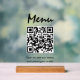 Placez ces élégants panneaux sur vos tables afin que les clients puissent scanner et sélectionner leurs propres choix de menu. Le signe acrylique moderne est transparent avec du texte noir, ce qui donne un look esthétique propre et aide à éviter les signes qui bloquent la vue de n'importe qui. Le texte ci-dessus et ci-dessous est personnalisable pour vos besoins professionnels.