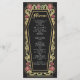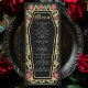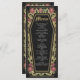 Ajoutez une touche d'élégance gothique à votre festin avec ces menus mariages à la structure en forme de cercueil, ornés d'épines, de roses et d'accents dorés contre un arrière - plan noir. Parfait pour un dîner romantique ! Personnalisez le texte, la police et la couleur arrière - plan en fonction de vos préférences de conception. Objets correspondants dans notre boutique pour un thème de fête complet. Veuillez noter que l'or sur les cartes n'est PAS du papier peint réel et est imprimé en couleurs plates.