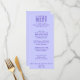 Un menu de dîner mariage rétro coloré et moderne Periwinkle. Ce qui présente le design modèle chic de boho vintage Periwinkle arrière - plan et la typographie bleue et menu écrit à la main en bleu. Et un arrière - plan vert verdoyant. Parfait et assorti à toute la suite.