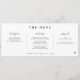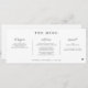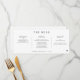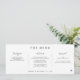 Ces menus de mariages horizontaux uniques sont dotés d'un script d'écriture moderne dans un design simple en noir et blanc. Personnalisées avec les noms du couple et la date du mariage, elles ajoutent une touche design à votre réception, alliant élégance et atmosphère personnalisée pour votre journée spéciale.