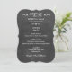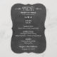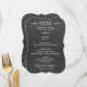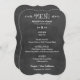 Carte de menu de dîner de mariage décontractée et élégante avec une apparence de craie blanche écrite à la main sur un tableau noir. Personnalisez avec les informations sur le lieu de réception, les détails du menu et un monogramme de votre nom de famille marié et jour de mariage.