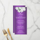 Ce magnifique menu mariage est décoré dans un style élégant et sophistiqué qui donne le ton à votre journée spéciale. La couleur violet, riche en audace et qui attire l'attention des clients, et les roses blanches en haut apportent une touche d'élégance et de romantisme. Le texte blanc simple facilite la lecture du menu et complète le design général. Ce menu est parfait pour les couples qui veulent créer un mariage mémorable et élégant avec une belle atmosphère romantique. De plus, ce menu est hautement personnalisable et peut être adapté pour inclure vos détails personnels de menu mariage pour la réception. Peu importe la façon dont vous choisissez de le personnaliser, ce magnifique menu mariage violet aux roses blanches sera un complément magnifique et mémorable à votre journée spéciale.