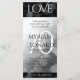 Ajoutez de la sophistication aux célébrations du 70e anniversaire du mariage de platine avec ce menu du dîner, qui comprend des lettres élégantes et des confettis hexagonaux sur feuille de platine et des arrière - plans noirs. Customisez avec les noms du couple, les dates du mariage, les détails du lieu, les menus et les messages de félicitations.. Design © W.H. Sim. Voir plus sur zazzle.com/expressionsoccasions