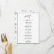Ce menu mariage propose des feuilles peints en vert d'eau et de la lavande avec une calligraphie moderne. Pour une personnalisation plus avancée de cette conception, cliquez sur le lien "Customiser plus loin".