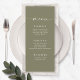 Menu Élégant couleur solide Olive Lily Mariage vert