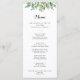 Cette élégante carte de menu calligraphie de feuillage vert tropical est parfaite pour un mariage moderne. Ce design dessiné à la main présente une aquarelle de beaux feuilles verts. Ce menu peut être utilisé pour une réception de mariage, un dîner de répétition, une douche nuptiale ou tout événement.