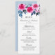 Elégant et simple, le menu mariage est composé de roses d'aquarelle rose vif, de feuillage bleu et gris sur un arrière - plan blanc. Le côté inverse du menu est de couleur bleu poussiéreux.