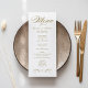 Les cartes de menu élégantes et formelles du dîner mariage disposent d'un script élégant et de détails de défilement avec un design d'inspiration vintage. Couleurs blanches et or ancien. Personnalisez le monogramme personnalisé avec les noms de mariée et de mariée, la date de l'événement et les détails du menu.