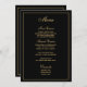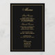 Une façon élégante de montrer à vos invités leurs options de menu. En noir avec écriture or. Une police de script mariage a été combinée avec un style moderne toutes les polices casquettes créant un menu mariage élégant et convivial. Un grand espace a été alloué pour les options de menu. Le verso de la carte a des points d'or pointu fin. Il fait partie de notre collection de Mariages Passport où vous trouverez des articles mariages correspondants et coordonnés en noir et or.