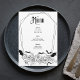 Découvrez l'enchantement grâce à ce menu Mariage gothique, parfait pour un mariage d'Halloween. Ce design moderne et élégant allie une esthétique boho-foncé à une ambiance moody et éffrayante, capturant l'essence d'une célébration d'octobre. Infinement décoré de motifs de chauve-souris et d'araignée, à côté d'éléments floraux délicats, ce menu mariage présente une palette de couleurs noir et blanc frappante. Donnez le ton de votre journée spéciale avec un mélange unique de beauté et d'élégance intemporelle.