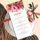 Donnez un ton romantique à votre réception grâce à cette carte de menu mariage floral couleur aquarelle, conçue avec des pivoines, des dahlias et de la verdure orange et rose vif. L'art floral délicat et la disposition moderne créent un équilibre parfait entre l'élégance intemporelle et le style contemporain. Idéal pour les mariages du printemps ou de l'été, ce menu propose des thèmes minimalistes, des thèmes de jardin, des thèmes boho ou mariages classiques. Affichez vos entrées, entrées et desserts avec style grâce à ce menu magnifique et fonctionnel, une touche de finition agréable pour votre décor de table mariage.