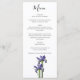 Cet élégant design floral présente des iris violets. Les noms de la mariée et du marié sont assortis au violet de la fleur d'iris. Une image plus grande des élégantes fleurs d'iris est utilisée à l'envers. Il s'agit de l'élégant design floral mariage idéal pour n'importe quel thème mariage. Elégant design de carte de menu mariage de fleurs iris avec des éléments modernes. Des invitations de mariage et d'autres articles de papeterie sont également disponibles.
