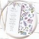 Impressionnez vos invités avec un menu de mariage élégant qui complète votre décor mariage. Avec un délicat arrangement floral peint à la main de lilas en lavande, violet et bleu, accompagné d'une verdure luxuriante, ce menu met en valeur vos choix de repas soigneusement sélectionnés. Le design raffiné améliore votre paysage de table tout en ajoutant une touche personnalisée à chaque endroit. Mettez facilement à jour le libellé, les styles et les tailles de police pour correspondre à votre thème mariage et créez une expérience gastronomique sans faille remplie de charme et de sophistication.