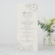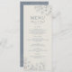 Vintage, boho, floral bleu mariage menu avec élégante perwinkle et écriture manuscrite simple.
