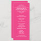 Les cartes de menu élégantes et formelles du dîner mariage sont dotées d'une pop de couleur avec impression inverse blanche. Personnalisez avec votre date d'événement et les détails du menu. Affichez des cartes sur les assiettes des clients ou enveloppez-les dans des serviettes à chaque endroit pour un look élégant. Couleur arrière - plan chaude / magenta rose.