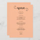 Menu Élégant Moderne Calligraphie Script Peach Mariage