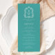 Menu Elegant Monogram Crest Turquoise White Wedding