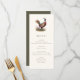 Chasse carte de menu à thème avec une illustration de faisan et une typographie élégante, fond vert olive foncé et texte personnalisé. Parfait pour un dîner de campagne, un dîner de répétition de mariage élégant, un dîner de chasse, une fête de retraite de chasse ou une fête d'anniversaire de chasse.