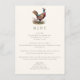 Chasse carte de menu à thème avec une illustration de faisan et une typographie élégante, fond vert olive foncé et texte personnalisé. Parfait pour un dîner de campagne, un dîner de répétition de mariage élégant, un dîner de chasse, une fête de retraite de chasse ou une fête d'anniversaire de chasse.