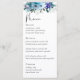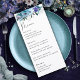 Elégant menu mariage à fleurs bleu violet printanier. Laissez-vous surprendre par ce menu unique d'inspiration fleur sauvage, orné de fines fleurs bleues, violettes et lilas poussiéreuses. Doté d'élégants fleurs sauvages d'aquarelle et d'une végétation luxuriante, ce design saisit la beauté enchanteresse d'une prairie printanière ou estivale. La combinaison raffinée de script fluide et de typographie serif classique assure une mise en page sophistiquée et lisible, mettant en valeur votre menu soigneusement conçu. Parfait pour les mariages romantiques et d'inspiration nature, ce menu ajoute une touche charmant et élégante à votre cadre de table, renforçant l'ambiance générale de votre journée spéciale.