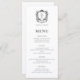 Cette Elégante carte de menu Rose Monogram Crest Mariage en noir et blanc intemporel est parfaite pour votre mariage de style baroque, avec un bouclier floral vintage et une typographie classique intemporelle.