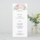 Elégant Blush Rose Roses Floral Mariage Menu conçu avec des fleurs roses douces sur un arrière - plan blanc. Le texte de l'avant comprend : Appetizer, Entre et Dessert Selections. Le texte inverse inclut les prénoms et la date du Mariage de la mariée et de la chambre. Pour personnaliser, il vous suffit d'insérer tous vos détails dans notre modèle facile, en remplaçant l'exemple de texte. N'oubliez pas de consulter la collection de Mariages floraux Elegant Blush Rose Roses pour assortir papeterie et accessoires.
