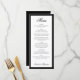 L'aménagement épuré et minimaliste renforce l'atmosphère luxueuse, permettant à chaque plat de briller. Idéal pour les cravates noires ou les mariages classiques, ce menu ajoute une touche polie et élégante à vos tables, assurant à vos invités une atmosphère raffinée qui complète le raffinement de votre journée spéciale.