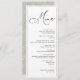 Conçue pour coordonner avec notre collection de mariages de script romantique, cette carte Menu personnalisable, dispose d'un texte de calligraphie de script balayé avec une police serif classe en noir avec un dos vert sauge gelé et un monogramme personnalisable. Éléments correspondants disponibles.