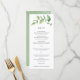 Menu mariage rustique au design simple avec une aquarelle verte peinte avec de grands feuilles, sur un arrière - plan blanc. Un design botanique élégant qui conviendra à un mariage d'été.