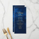 Cette élégante carte mariage romantique présente un univers bleu foncé dramatique arrière - plan d'étoiles. Vous pouvez ajouter les détails de votre menu en cliquant sur le lien personnaliser. Il s'agit d'une magnifique suite de mariages avec cartes de numéro de table, cartes de place et bien d'autres articles.