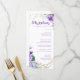 Design floral géométrique et violet élégant pour votre menu mariage. Présente des fleurs violettes délicates dans cadre géométrique or. Les coeurs dorés et les étoiles confettis en haut à gauche et en bas à droite ajoutent une touche de romantisme et d'élégance. Personnalisez-le avec vos propres détails. Pour plus de personnalisation, n'hésitez pas à me contacter à kbasandra@gmail.com . Trouvez des articles de papeterie de coordination dans la collection Mariage de fleurs géométriques violettes or.