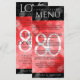 Ajoutez de la sophistication aux célébrations du 80ème anniversaire du mariage de rubis avec ce menu du dîner, qui comprend des lettrages élégants et des confettis hexagonaux sur des arrière - plans rouges et noirs de rubis. Customisez avec le nom du couple, la date du mariage, les détails du lieu, les menus et les messages de félicitations. Design © W.H. Sim. Voir plus sur zazzle.com/expressionsoccasions