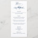 Le design classique chic comprend des graphismes de texte personnalisés dans une police de script fluide et des champs de texte modifiables pour les détails de votre menu de célébration avec élégance gravée de couleur bleue florale. Le dos est orné d'une couronne florale complémentaire encerclant votre monogramme. Magasinez les produits correspondants dans Collections au magasin Grafixmaman.