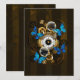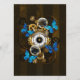 Composition de l'horloge ronde steampunk avec cadran romain noir, décoré avec des engrenages or et laiton, papillons Morpho bleu et lentilles endommagées sur arrière - plan rayé brun. Style Steampunk.