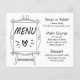 Faites savoir à vos invités ce que vous allez servir à manger avec cette carte de menu amusante dessinée à la main et facile noir et blanc. Vous pouvez customiser le menu avec vos options alimentaires, changer les polices et les couleurs pour répondre à vos besoins. Les menus noirs et blancs sont parfaits pour * mariages, douches nuptiales * événements d'affaires * cérémonies de remise de prix * fêtes * fêtes * collecteurs de fonds/ organismes de bienfaisance. Faites défiler vers le bas pour voir les produits correspondants que vous pouvez apprécier.