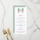 Un menu aux couleurs festives (rouge et vert) et avec mes propres illustrations d'aquarelle d'origine (la topiaire de boxwood avec arc). Le motif au verso a été créé numériquement par moi. La lettre monogramme dans l'écusson pourrait être la première lettre du nom de famille ou le prénom de l'honoré (vous pouvez également accéder à l'outil de conception et supprimer entièrement pour simplement laisser la topiaire de boxwood avec arc). Vous pouvez également modifier la couleur de contraste au verso (actuellement vert sap) en modifiant la couleur arrière - plan au verso.