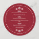 Le menu de la fête de Noël en rouge avec des polices blanches modernes et tendance, et votre nom et l'événement dans un texte incurvé le long du menu rond du dîner de Noël à thème flocon de neige. Menu de Noël rouge flocon imprimé sur une carte ronde personnalisée avec votre nom, l'événement, et entrées, entrées, et dessert avec des flocons de neige blancs. Décorez votre table de Noël avec des menus imprimés rouges et blancs où vos invités peuvent voir quelles entrées, entrées et desserts vous servirez ce soir avec ce menu rond de Noël Flacon de neige rouge.