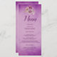 Ce menu de réception de mariage présente un beau menu de réception de mariage floral pourpre utilisant un arrangement floral pourpre sur un fond pourpre. Avec "Menu" écrit en haut en police pourpre cursive, toutes vos informations sont imprimées en police pourpre lisible sur un fond pourpre. Personnalisez comme vous le souhaitez.