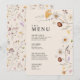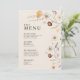 Les cartes de menu de mariage sont caractérisées par un style bohème, des illustrations florales et des couleurs beige, avec un mélange de différents styles de police, souvent de différentes tailles, pour créer un look unique et éclectique qui fait ressortir l'esthétique naturelle de ce menu.