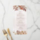 Cartes de menu mariage de style bohème moderne avec des fleurs d'aquarelle et des feuilles de chute dans les tons terre comme rouille brun, orange brûlé et terre cuite. Un choix parfait pour les mariages d'automne.