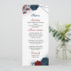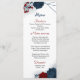 belles fleurs rouges et bleu marine et élégant menu mariage botanique feuille.