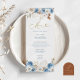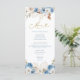 Blue Dusty Blue Boho Floral Menu Card, menu Baby shower, menu nourriture et boissons.