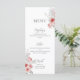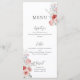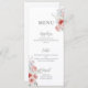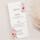 Elégante pêche à l'aquarelle et carte de menu floral bleu doux avec police de calligraphie chic.