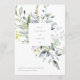 Ce design présente des fleurs bleues poussiéreuses et des feuilles d'eucalyptus dans les tons verts.
