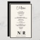 Das Dinner Menu für Proben in Off White und Black Wedding Monogram, eine raffinierte Ergänzung zu Ihren Hochzeitsfeiern, die zeitlose Eleganz mit personalisiertem Charme verbindet. Diese Menüs sind perfekt gestaltet und Set für ein unvergessliches Probe-Dinner, eine Verlobungsfeier oder einen Hochzeitsempfang. Unsere eleganten Hochzeitsmenüs sind schlicht und raffiniert gestaltet und verfügen über einen klassischen cremefarbenen Hintergrund mit eleganten schwarzen Akzenten. Ihr personalisiertes Monogramm steht im Mittelpunkt der Bühne und fügt jedem Detail eine Touch von Raffinesse und Individualität hinzu. Diese Speisekarte für Proben, die auf den Anzug Ihres Geschmacks und Stils abgestimmt ist, verbindet Eleganz und Einfachheit. Egal ob Sie eine intime Ansammlung oder eine aufwändige Affäre beherbergen, unsere personalisierten Abendmenüs sorgen dafür, dass jeder Aspekt Ihrer Veranstaltung perfekt präsentiert wird. Pair diese Menüs mit unseren passenden Platzkarten, um ein einheitliches und gepflegtes Erscheinungsbild zu schaffen, das Ihre Gäste von der Ankunft an beeindruckt. Mit viel Liebe zum Detail und einem hohen Qualitätsanspruch, sind unsere Creme für die maßgeschneiderte Probe Dinner Menus von Off White und Black Wedding Monogram die ideale Wahl für Paare, die die Schönheit der Einfachheit und den Power der Personalisierung zu schätzen wissen.