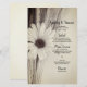 Das rustikale, schicke "Dried Wheat and Daisy Country Farm Wedding Menu" mit den Details der Mahlzeit, die Sie in Ihrem ländlichen Ranch Thema Brautparty Mittagessen, Post Hochzeitsbrunch oder Ehe Empfang Dinner, indem Sie den Salat oder ersten Gang, Vorspeise oder zweite Gang und Dessert oder dritten Gang. Personalisieren Sie es mit den Namen der Braut und Bräutigam, Veranstaltungsort und Datum. Dieses charmante, individuell zusammengestellte Hochzeitsmenü bietet ein malerisches Schwarz-Weiß-Sepia-Farbfoto von getrockneten Weizenkörnern mit weißer, blühender Blume.